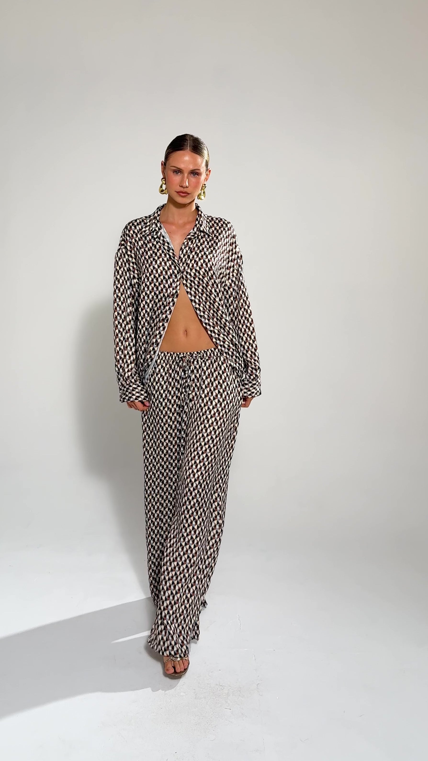 Elevated Loungewear to wear at home or out during day to night. Dress up for evening switching up the top or bottom with other pieces in your wardrobe. Blouse is also perfect over a swimsuit as a cover up or paired with denim.